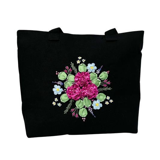 Peach/Mint Green Sling Bag with Ribbon Roses Embroidery Design