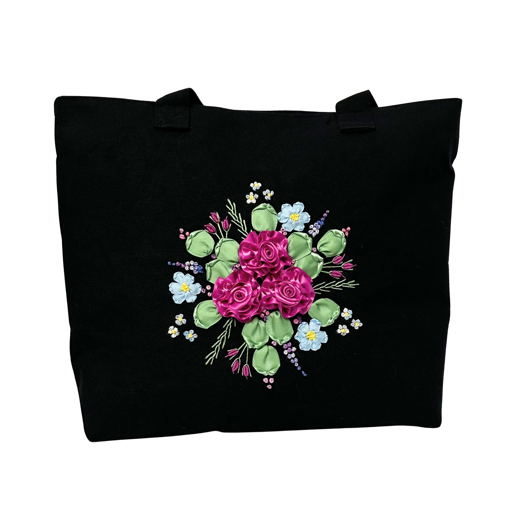 This elegant tote bag combines the natural charm of plain cotton fabric with delicate ribbon rose embellishments. Spacious enough to accommodate your essentials effortlessly, it offers both practicality and refined style for everyday use. Perfect for those who appreciate subtle, sophisticated floral accents.